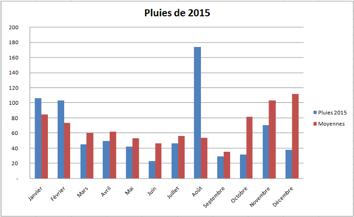 Précipitations totales sur le mois : 174.4 mm (16 jours>1 mm)