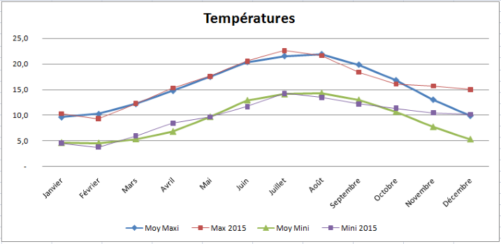 Nombre de jours avec forte chaleur supérieure ou égale à + 30.0 c° : Néant