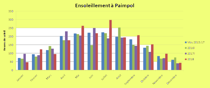 Heures de soleil sur le mois :Â 178H, 16 jours >50% dont 5>80%