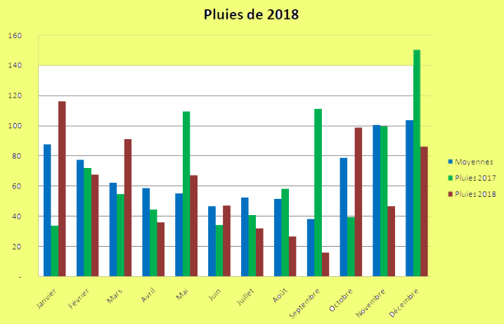 Précipitations totales sur le mois : 94.6mm (18 jours>2 mm)
