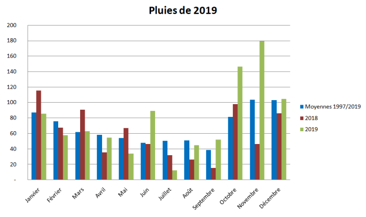 L'ensoleillement a été bon.La pluviométrie mieux qu'en 2018, mais moins que la moyenne.Un coup de vent entre le 22 et le 27