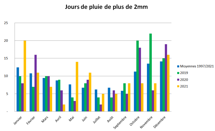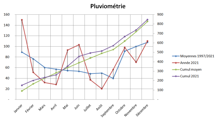 Mai 93mm (la moyenne 54mm) et juin 97mm (la moyenne 53mm) après juin 2020, 118mm lui aussi bien pluvieux.