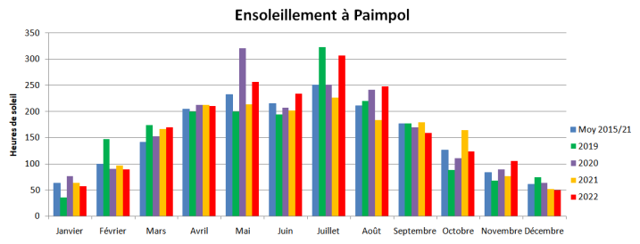 Cumul heures de soleil sur l'année : 1731h bonus de 145h sur la moyenne 2015/2022