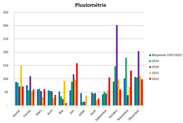 Mai 93mm (la moyenne 54mm) et juin 97mm (la moyenne 53mm) après juin 2020, 118mm lui aussi bien pluvieux.
